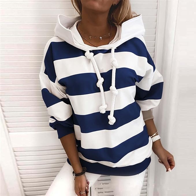 Damen Kapuzenpullover mit Streifen und Kordelknoten