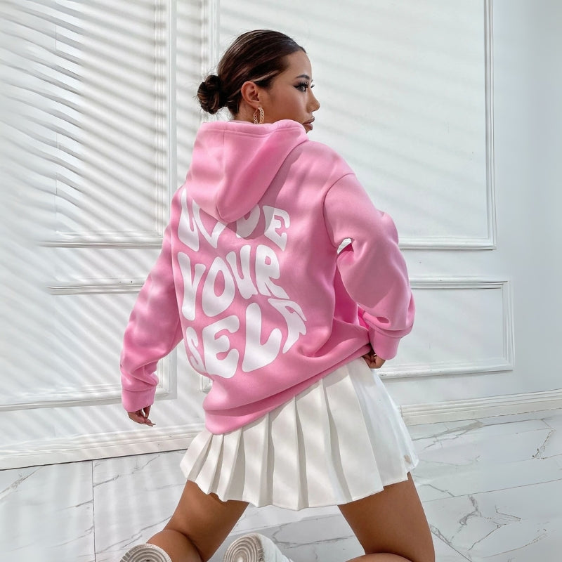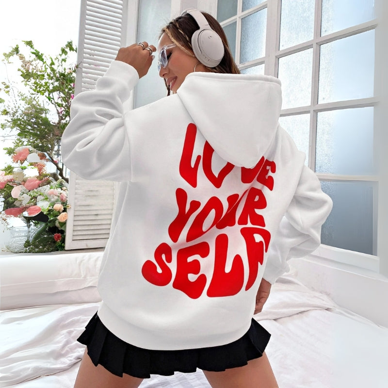 Damenkapuzenpullover mit Kordelzug und Schriftzug-Print hinten
