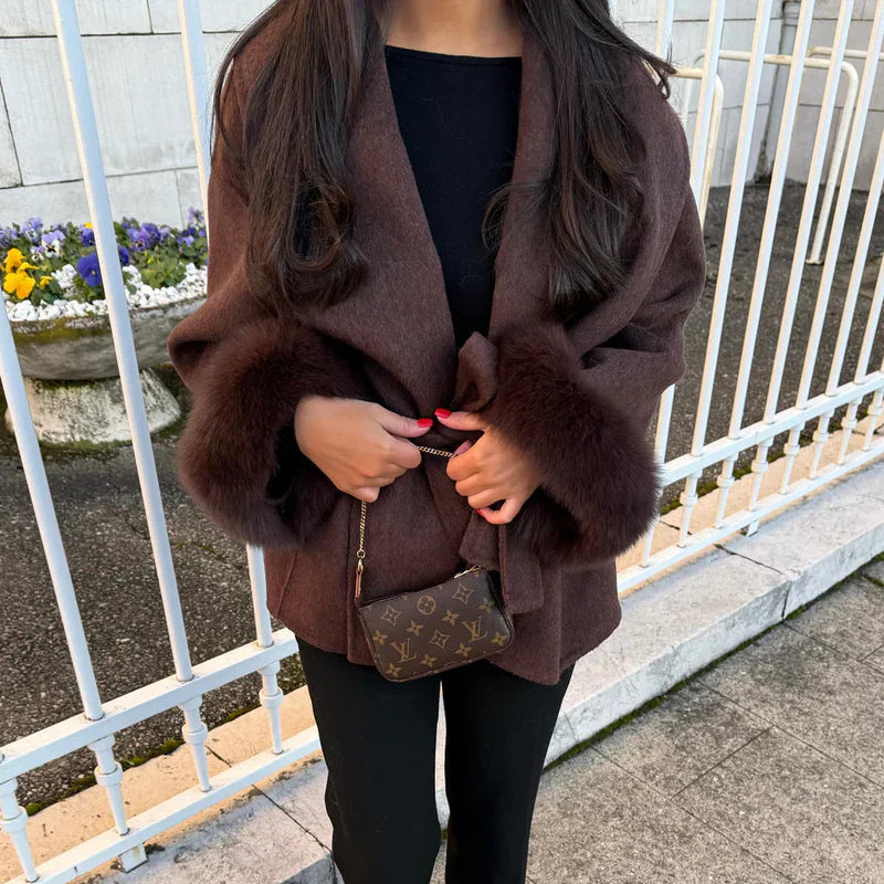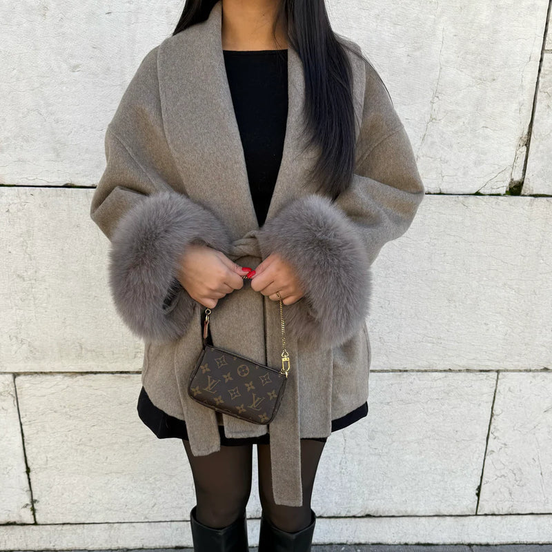 Damenmantel mit Schalkragen Bindegürtel und Fellbündchen