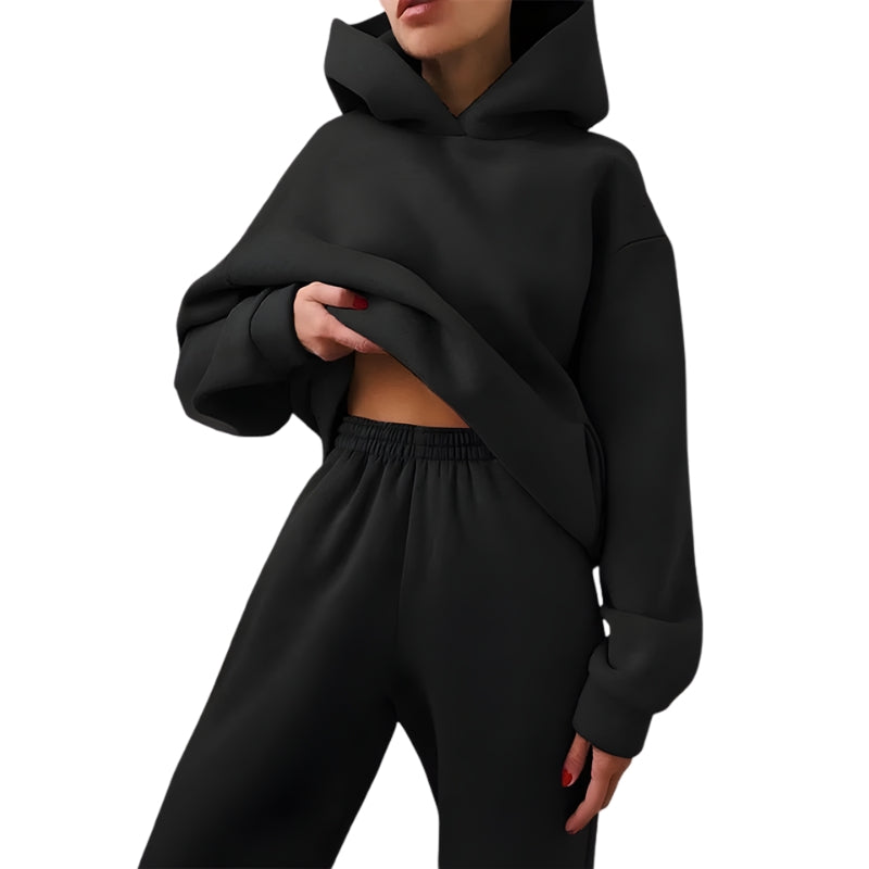 Damen Zweiteiler mit Kapuzenpullover und Hose mit elastischem Bund