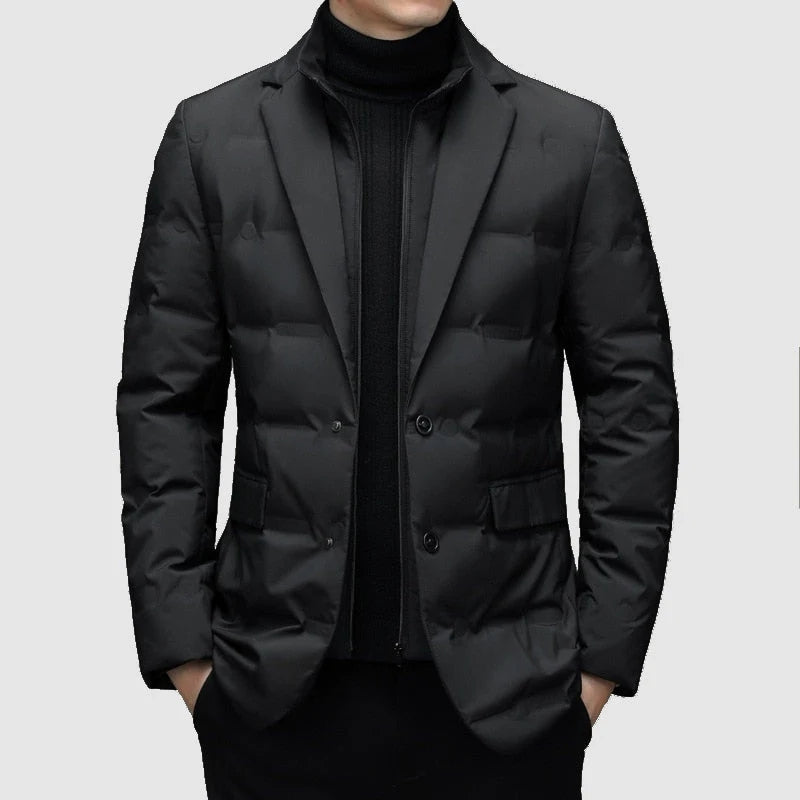 Diese Jacke präsentiert sich in einem klaren Silhouettendesign mit dezenter Steppung für einen modernen Ausdruck. Das Modell verfügt über einen Reverskragen, eine Knopfleiste vorne und Pattentaschen, die dem Design zusätzliche Form verleihen.