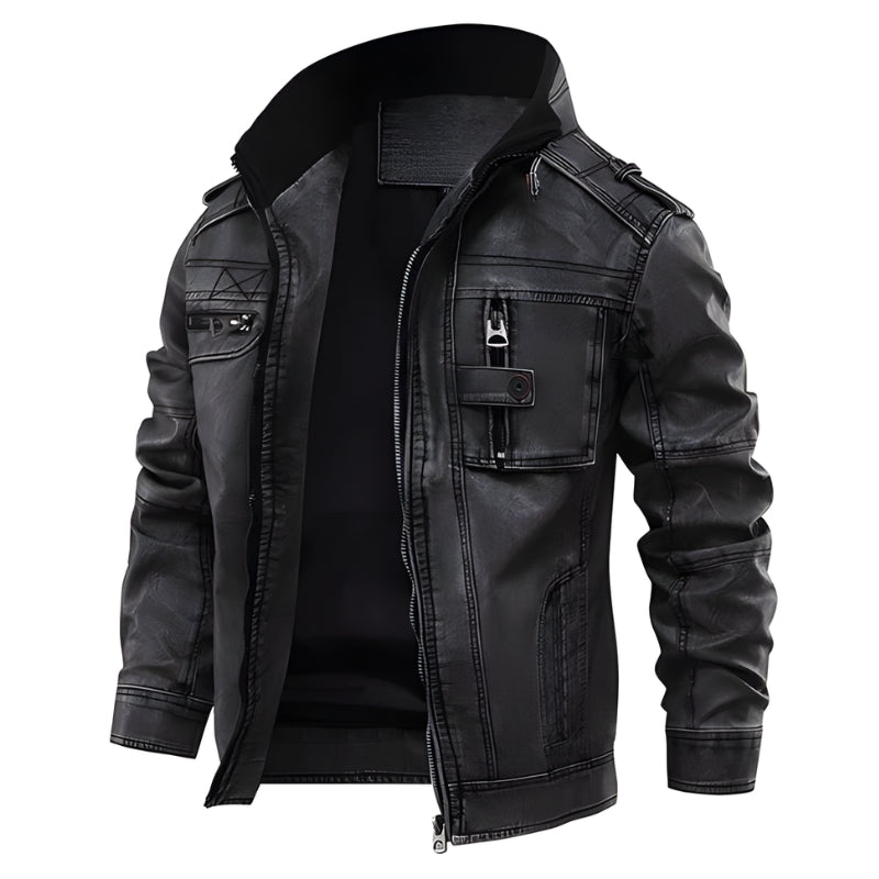 Herren-Bikerjacke mit Kapuze und Reißverschluss