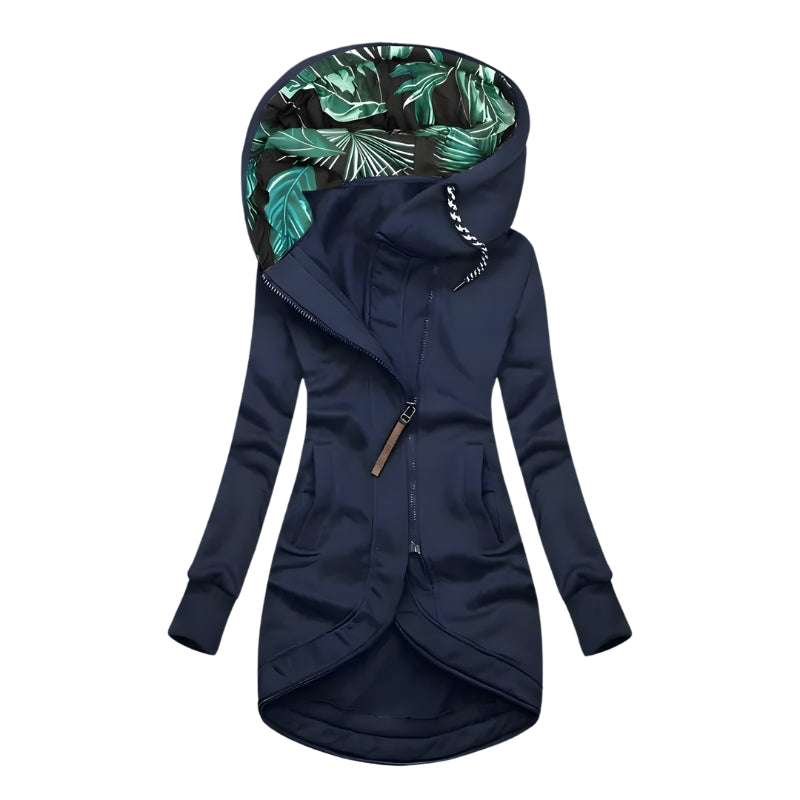Damenjacke mit Kapuze und Blattmuster-Futter